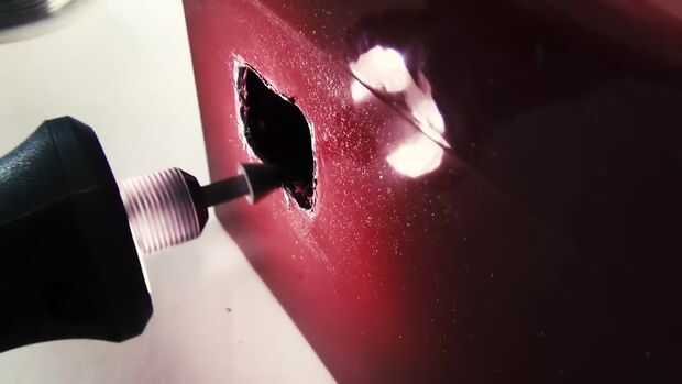Usted también necesitará utilizar una dremel para cortar un cuadrado en el caso de herramientas de metal y el interruptor de alimentación a través de allí.