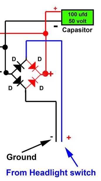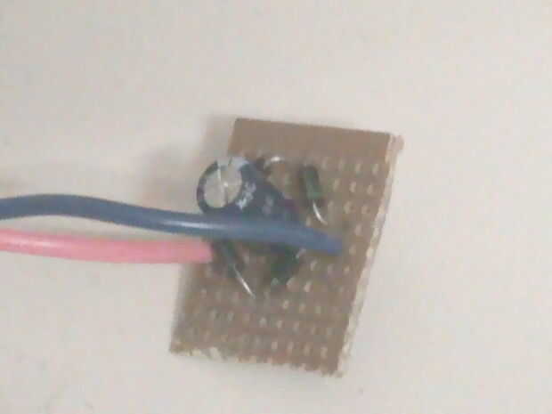 La moto genera electricidad de la CA. Pero su linterna LED requiere DC. Así que solucionar este problema un rectificador se utiliza. Convierte la CA a corriente continua. Los cuatro diodos y el condensador como en el circuito de la soldadura. Y el rectificador está listo.