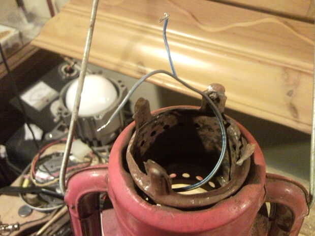 4. pasar los cables en los brazos es un poco complicado hacerlo ya que hay un montón de curvas en estas linternas, terminó con una cadena y una tuerca hexagonal pequeña y soltó thew entonces ató mis cables en cadena y se tira de ellas thew posterior que fue la mejor manera que encontró y llevó a todos de 30 segundos a la hora que pasé intentando pescar los cables lanzó.