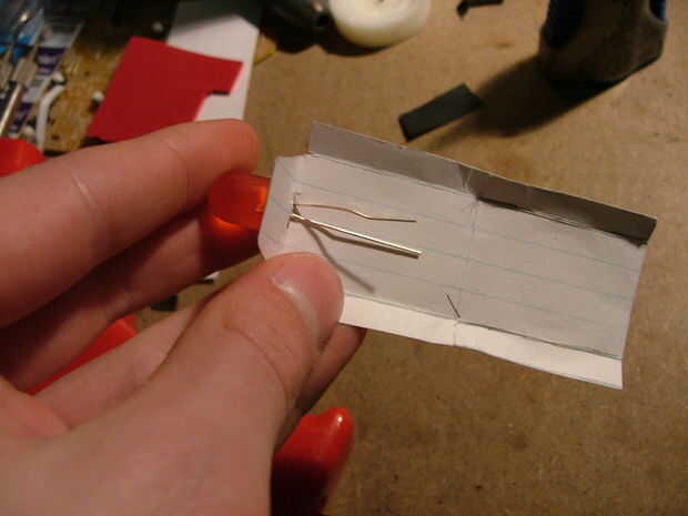 Conecte los cables de tu LED en la ranura que creaste antes. Torcer los ayuda a ellos ajuste alrededor de la batería mejor.