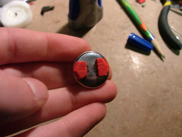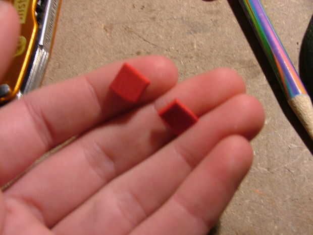 En primer lugar, cortar 2 trozos pequeños de espuma que son aproximadamente 1/4 de una pulgada cuadrada. Luego coloque dos pequeños puntos de pegamento en el terminal negativo de la batería en la configuración que se muestra en la segunda foto. Dejando una separación de 1cm, poner la espuma en los puntos de pegamento. Si cualquier espuma cuelga apagado de la batería, recorte.