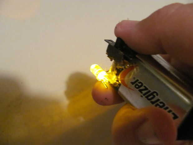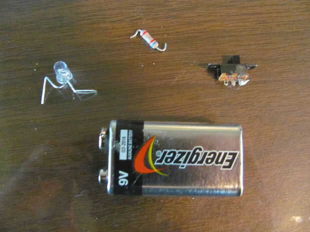 Lo primero que vas a hacer una vez que tengas todos los materiales es: doblar los cables de LEDs de forma que toque el interruptor y el contacto positivo de la batería. Si no eres muy experimentado en electrónica el plomo más larga en el LED es el positivo.