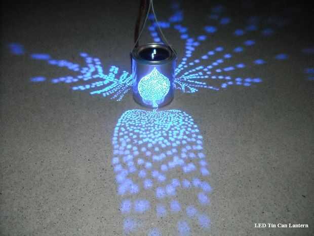LED la linterna que lata es usando un azul 1W Luxeon HB LED. (Alto brillo) El LED es conducido por un LED de 300 mA (corriente máxima) circuito controlador que funciona con 12V. Utilicé dos paquetes de baterías de 4 para en total de 8 puede llegar a pilas AA de NiMH para encender la luz. El conductor del LED puede ser hecho o comprado de eBay buscar "LED driver" cuestan alrededor de un dólar. Puede utilizar 5mm LED para iluminar el farol de la lata. Es mejor brillar la luz hacia abajo desde la parte superior de la tapa que me encontré.