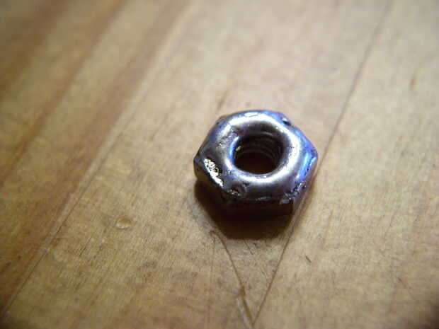 Pero no tenía ninguno a mano. Así que agarré una tuerca 4-40 y había estañado para arriba.
