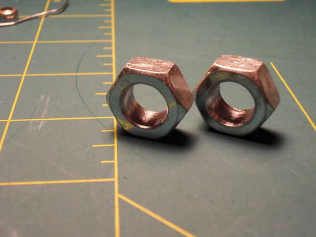Para el compartimiento de la batería también tuve que perfore las tuercas, porque a pesar de que las células habrían encajan, no encajo en el aislamiento.