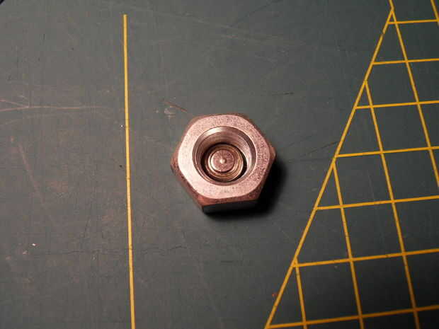 Para la tuerca con el interruptor, perforé un agujero que sería lo suficientemente grande para el interruptor y la tapa.