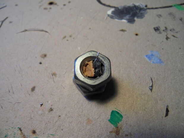 Para asegurarse de que el interruptor permanece, en su lugar, se atascó en un pequeño trozo de corcho (madera o plástico funcionaría igual de bien).