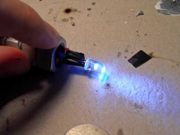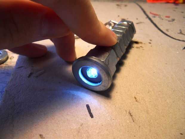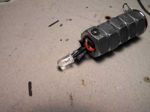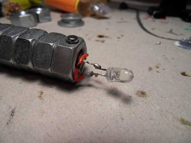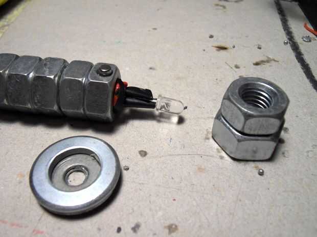 Al llegar el LED a trabajar puede pegar en el resto de las tuercas. Para acabar añadí unas arandelas en la parte delantera. Las arandelas también mantener el LED en su lugar.