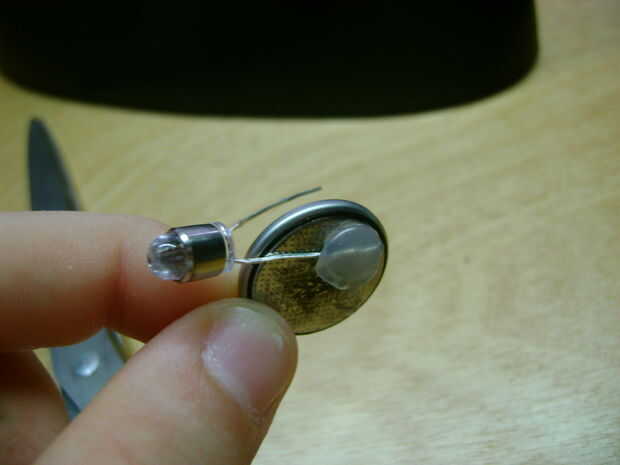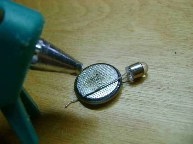 Todo lo que tienes que hacer es pegamento un alambre hacia el lado correcto de la batería. Doble el otro cable para que no toque la batería. Para volver a pellizcar la batería entre los cables.
