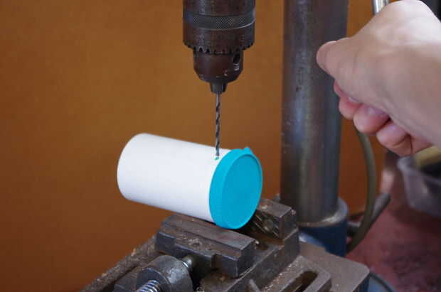 Necesitará tres agujeros en el lado del recipiente, una para los cables y dos 180 ° frente a la otra para el mango.