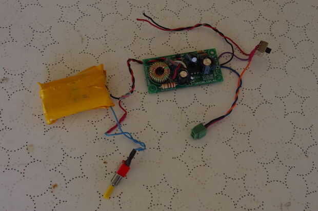 este pequeño kit de convertidor de energía que puede ser aparejado hasta proporcionar nada entre 4,5 y 15 voltios, perfecto para mi LED de 12 voltios. Oh y escurr solamente 3V!