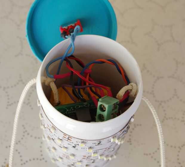 Corte una longitud de cadena de unos 30cm de largo (si su nylon recuerda a derretir los extremos o a fray) y atarlos dentro del frasco.