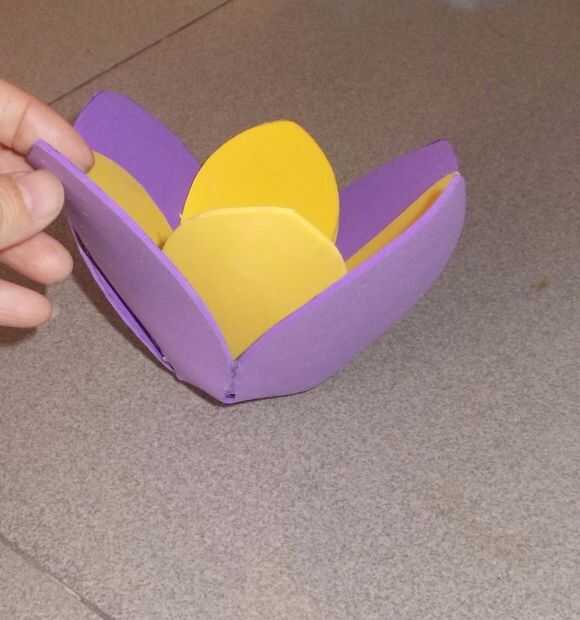 Paso 12: Coloque los pétalos amarillo en los pétalos de violeta y 4 agujeros en los pétalos amarillo
