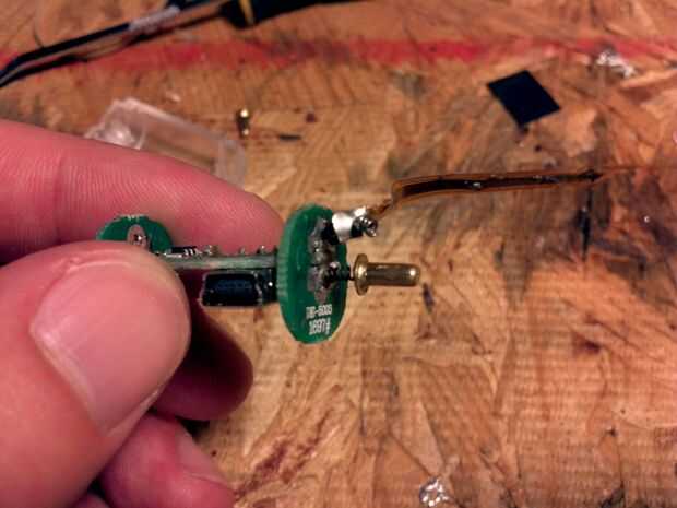 Quité la cubierta del pin de carga exterior y conectado el conector y la primavera interior utilizando una soldadura del pobre. (Quería pegarse con modificaciones no permanentes hasta que no puse mi casa en fuego)