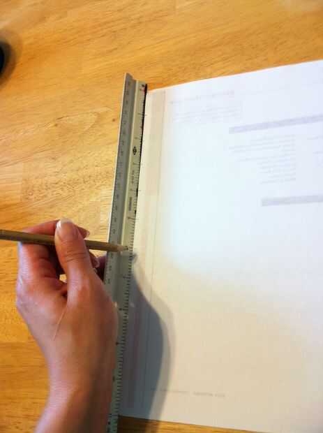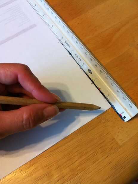 Esta es la parte! Ponga el papel sobre una superficie limpia dura. Poner tu regla a lo largo de un lado como se ve en la foto. Ponga una marca de lápiz pequeño cada una pulgada. Después de terminado el primer lado alinea su regla hacia el otro lado.