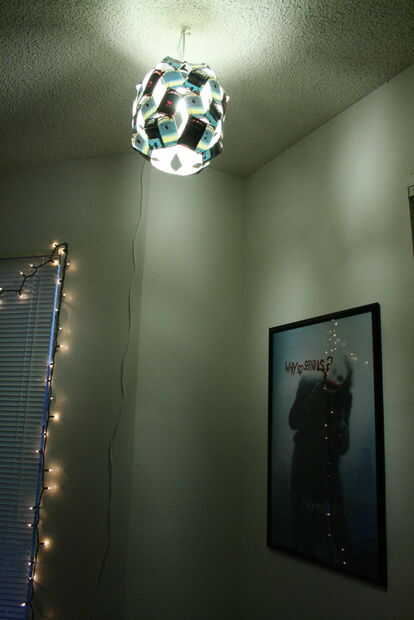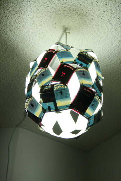 Yo fumo a Camel Turco Royals, y creo que mirar muy bien las cajas. En mi último apartamento, decidí cubrir toda una pared en Turco cajas reales. Era tan perfecto, porque mi novio tiene este viejo cartel que dice "Camel cigarrillos vendidos aquí." Ver foto. De todos modos, esa pared abajo cuando nos mudamos hacia fuera era un dolor total, y ahora que estamos en un nuevo lugar, quería hacer algo diferente con mis cajas de guardado. Hemos tenido esta toma luz de linterna de papel en el armario por Dios sabe cuánto tiempo, y tengo una caja llena en el armario de las cajas de cigarrillo y cerveza gastados. Así, con una idea, las cosas en mi armario y una caja de clavos, nació esta linterna.