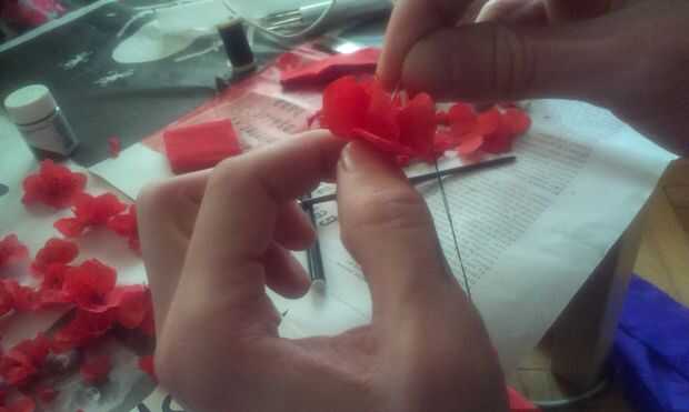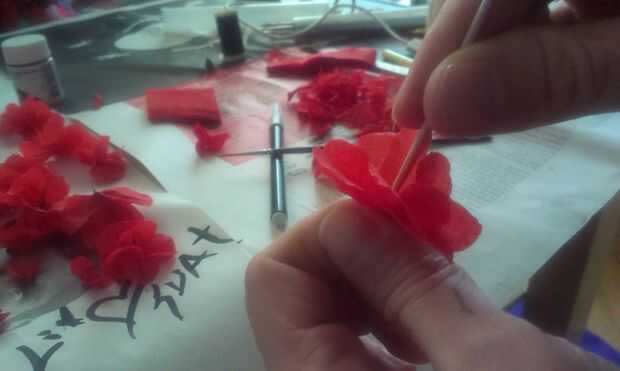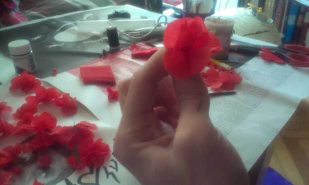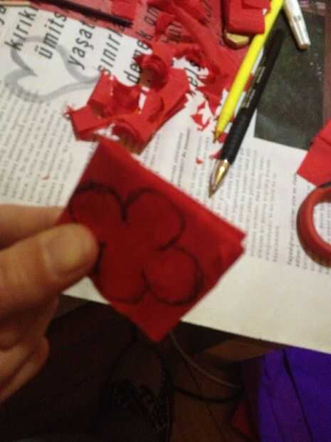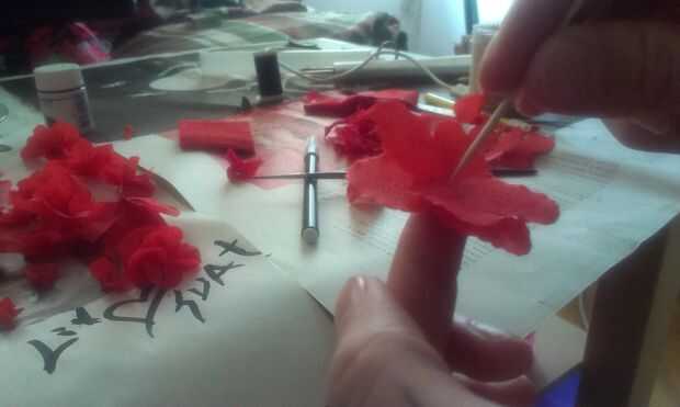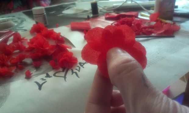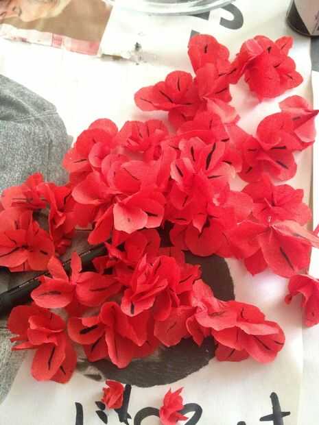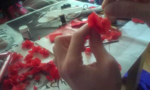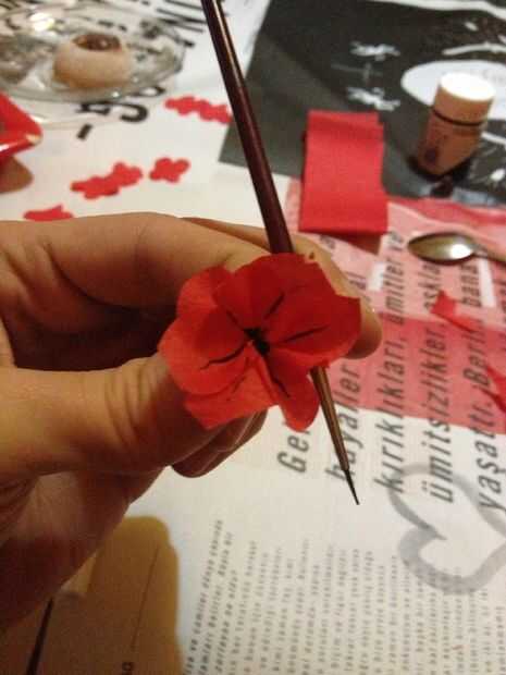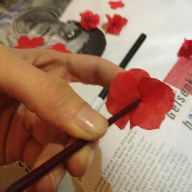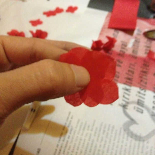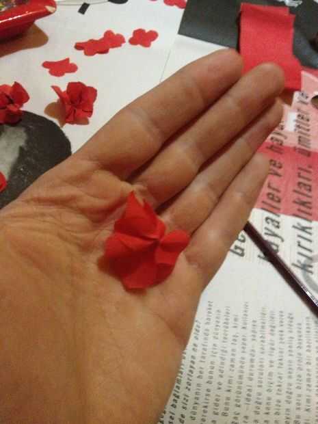 -Pones la forma de Cruz en en dos flores de papel. (Foto3-4)
