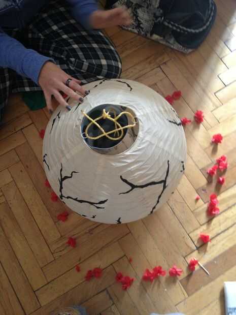 Linterna de papel de Sakura (3 / 3 paso)