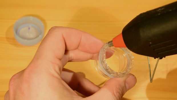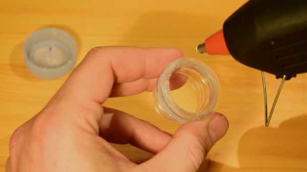 Conseguir una pistola de pegamento caliente y poner un poco de pegamento a la parte inferior de la tapa.