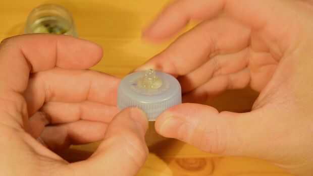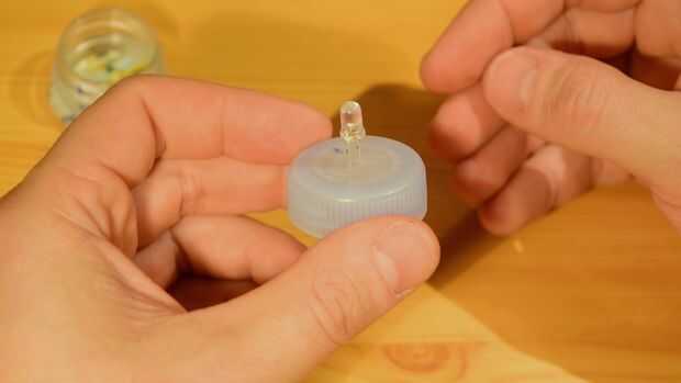 Tome la pistola encoladora y poner pegamento en el LED y empuje hasta la tapa.