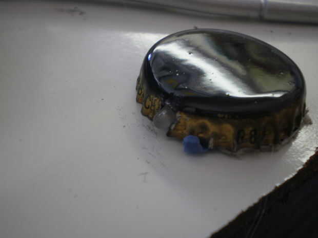 Lista de materiales:1. mazo de goma2. cápsulas3. alicates4. plegado cartulinaPaso 1: Doblar los bordes hacia el exterior Tome las pinzas y doblar los bordes de la tapa de la botella hacia afuera. Asegúrese de que esté incluso todo el camino alrededor