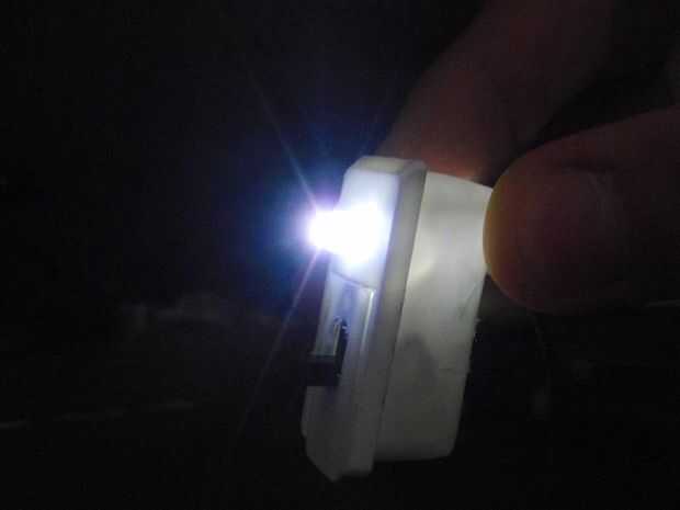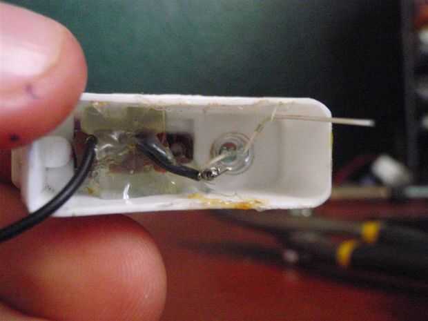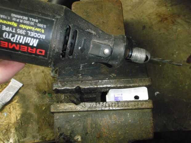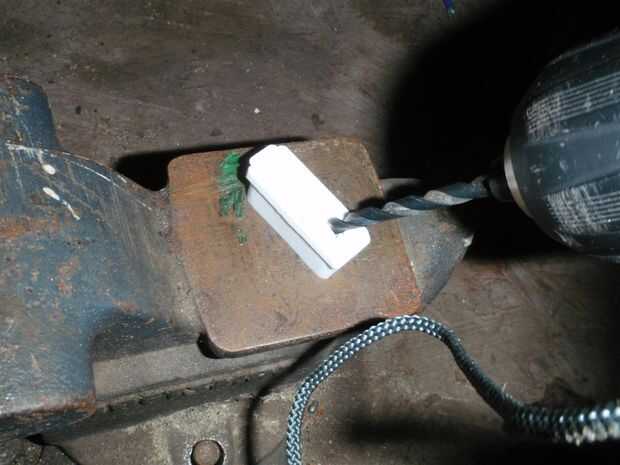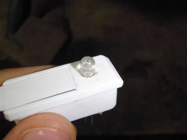 Si el agujero es de pequeño al principio (como la mía era), mueva la broca alrededor hasta que el LED quede.