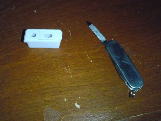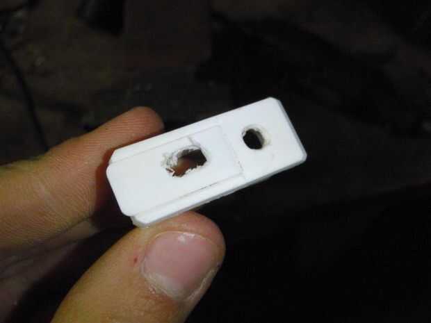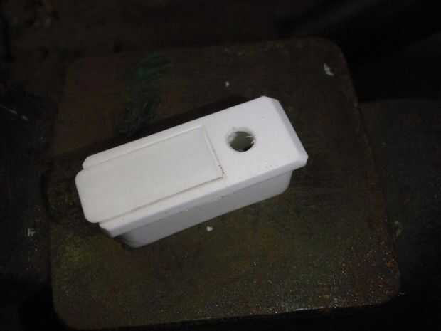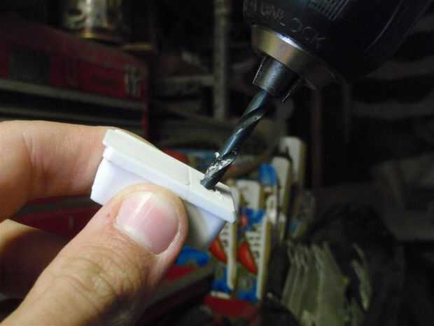 Estaba usando un interruptor, y así necesitaba un gran agujero. He marcado donde necesario cortar utilizando un rotulador y entonces perforado hacia fuera con una herramienta Dremel. (ver foto) Luego de limpiados para arriba el agujero un poco desigual con una lima de uñas.