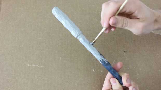 La última cosa que necesitamos hacer es la pintura la varita. Lo hice en dos capas. Primero apliqué una capa base de gris. Desea utilizar una pintura acrílica gruesa para esto. El color no importa particularmente para esta capa.