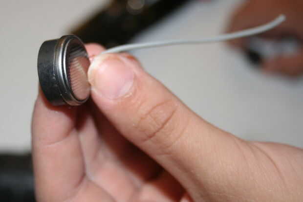 Coloque la batería de 3 voltios entre sus dos atado con alambre para imanes. Tome nota de que cable estaba tocando el lado positivo y que cable estaba tocando el lado negativo de la batería. En nuestras fotos utilizamos gris y negro para negativo por positivo.