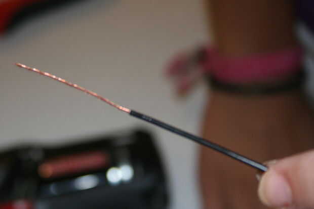 Exponer una gran cantidad de alambre, de casi 1 1/2 pulgadas, en cada uno de los cables.