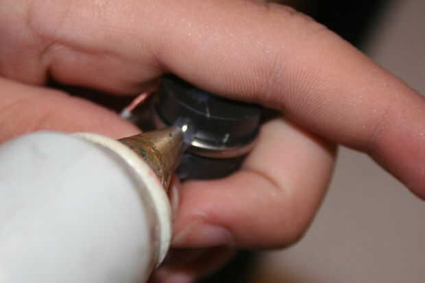 Compruebe la polaridad de los imanes para asegurarse de que podrán ser atraídos uno al otro y el imán en la parte inferior de la lata de película.