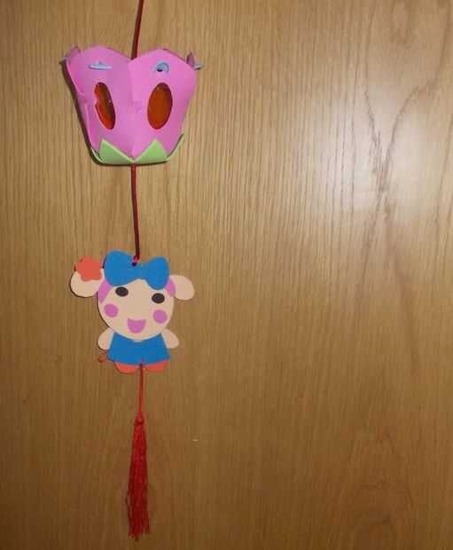 Paso 25: Meter el Sen de La Miss en la cadena de tela roja. Puede Agregar la luz eléctrica pequeña en el farol. El papel de cristal hará que la luz brille a través.