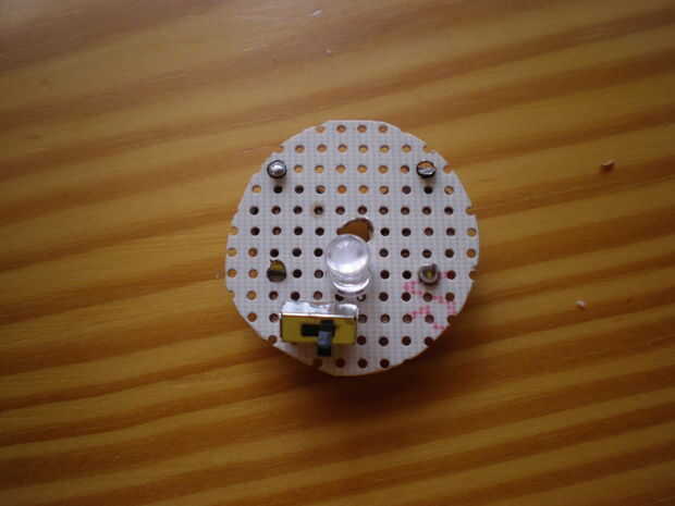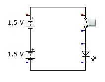 Se trata de un circuito básico con dos baterías en serie, un interruptor y un LED. Seguir el esquema si estás perdido.