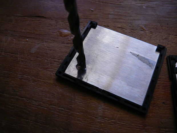 taladrar un agujero en el frente de la tarjeta y limar los bordes