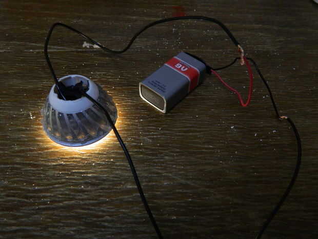 La forma más simple de probar led de "piernas" es sólo tiene que conectar la batería a él.