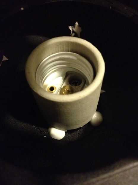 Luego apliqué pegamento a lo largo de la base de la toma de corriente para conectar a la lámpara. El método que utiliza era aspirar pegamento una paja hasta la mitad y luego soplar alrededor de la base. En las fotos puedes ver utiliza un método de punto de pegamento, pero terminó necesitando reforzar con más pegamento para resistir el par de torsión en una bombilla.