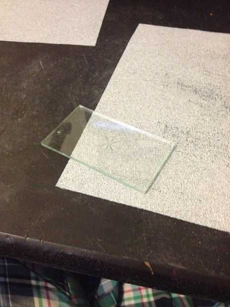 Usted necesita solamente un lado de la arena, y elegí el lado que no tiene la estrella de corte. Esta preferencia, pero izquierda mío con el patrón de estrella sin tocar pero todavía el glaseado. Sólo seguir frotando el vidrio sobre el papel de lija hasta que se ha convertido en completamente rasguñada para arriba. Usé hacia adelante y hacia atrás, girando y maldice para pasar el rato.