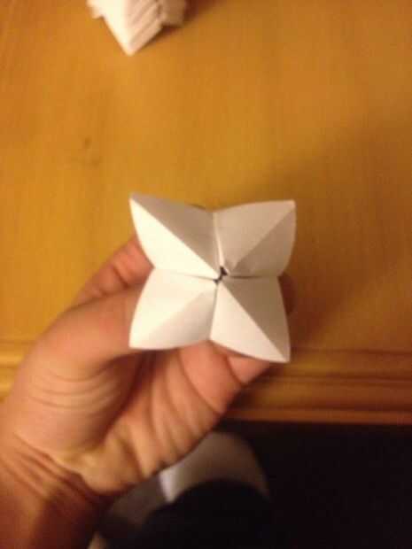 Luego nos podemos dobla el papel horizontalmente que le permitirá notar cuatro "aletas" que usted crea que son espacios perfectos para sus dedos. El último paso es acaba de poner los dedos en las aletas y simplemente les empuje hacia el centro, como el tratar de tocar juntos. Esto creará el adivino! Bueno hay uno. Tarda unos 125 de ellos para cubrir un círculo de diámetro de 12" por lo que es mejor conseguir a algunos amigos a ayudar o hacerlo mientras mira tv o relajante, no necesita ser perfecto.