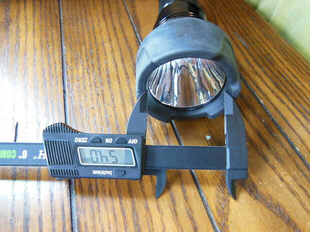 Medir la lente y tomar nota también medir la profundidad de cualquier labial que puede sobresalir de alrededor de la lente. Diseñamos un casquillo con el mismo tamaño, para que cuando la linterna está acoplada, la tapa llenará ese espacio vacío para un ajuste perfecto.