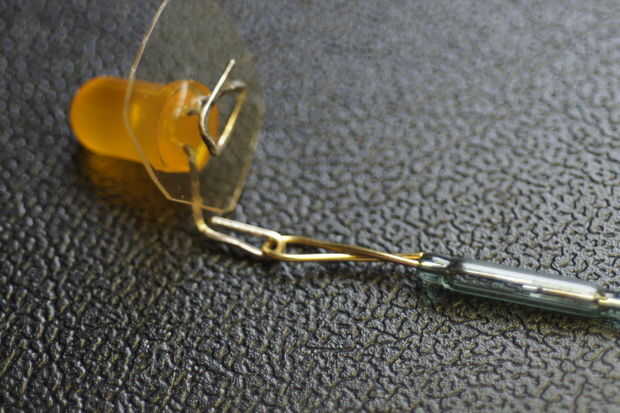 • Enganchar el anillo en un lado del interruptor de láminas en el anillo que hiciste en el ánodo del LED.