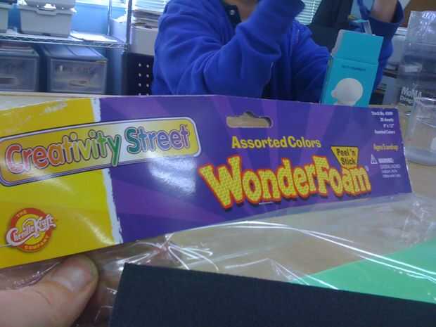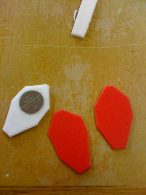 En este caso, utilicé "Wonderfoam" como el 'pan' de mi sandwich. O en otras palabras, las capas exteriores de la antorcha. Corte 2 fuera capas más o menos la misma forma y 1 pieza o plástico duro, también de la misma forma. Esto añade rigidez a la antorcha.