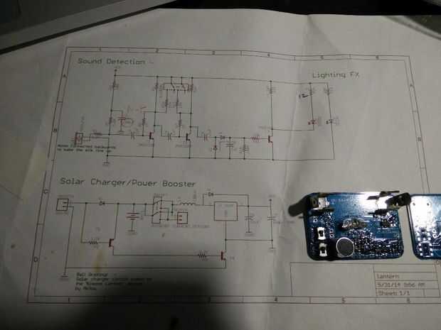 Hay dos piezas de la esquema. Uno es de transistores NPN (2N2222) y algunas otras resistencias y condensadores y diodos 1N4148 para las piezas de detectar sonido. El otro es el circuito de DC-DC boost.