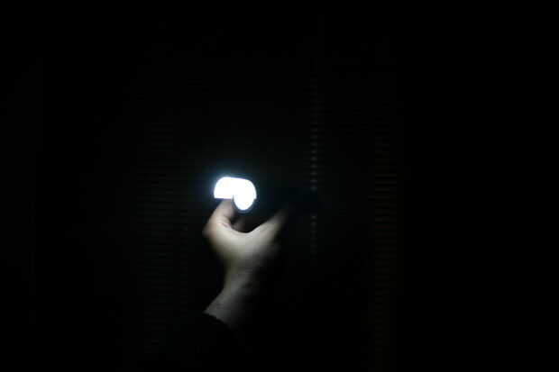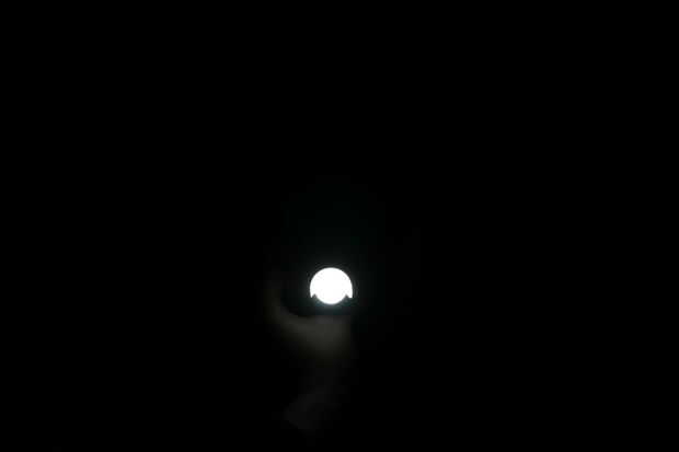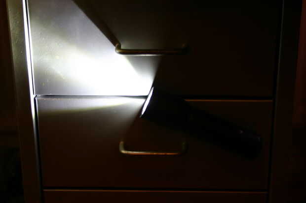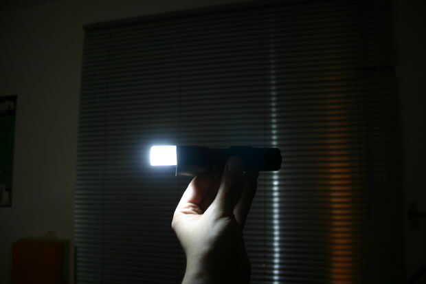 Si ves la linterna encendida desde el lado, es apenas visible, la viga es centrada y cubierta por la cubierta. Visto de frente puede cegarte, incluso si usted no está en el foco.