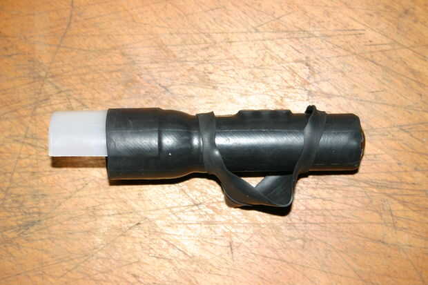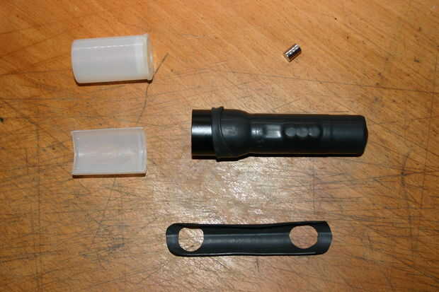 Primero ajuste la linterna todo en una pieza de cámara de bicicleta, que proporciona mejor agarre y agrega un cierto grado de dustproofness y la mejor protección contra salpicaduras de agua.