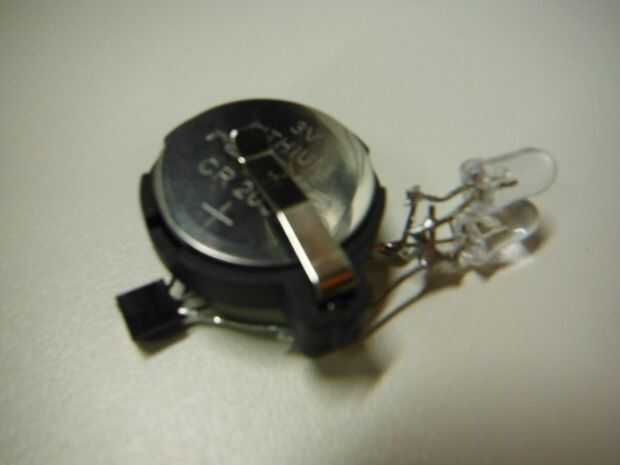 Ahora, agrega el portapilas al circuito. El lado con el transistor de la foto en ella es el lado positivo.