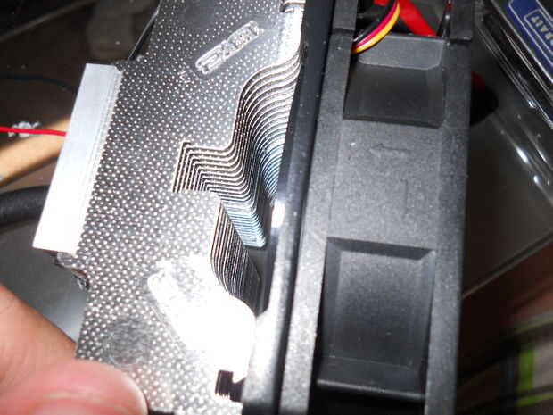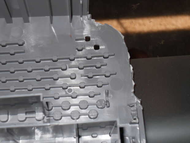 Para mi recinto, tuve que eliminar algunos de los pedacitos de plástico y cortar el borde para ajustar el ventilador. Esto no debería ser muy difícil, pero asegúrese de que el ventilador esté seguro y que ninguno de los cables será atrapado en él.