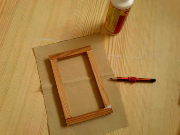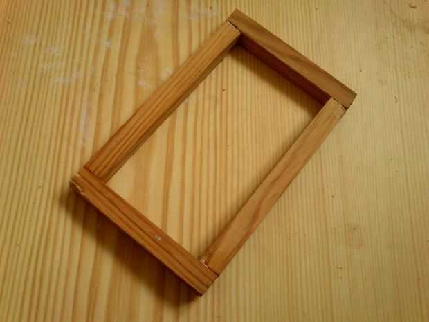 Tomar el palo cuadrado y cortar según las dimensiones de la linterna (mi puerta era algo acerca de 9 cm X 14, 5 cm). Luego clave los palillos juntos. Puede utilizar un pegamento como lo hice.