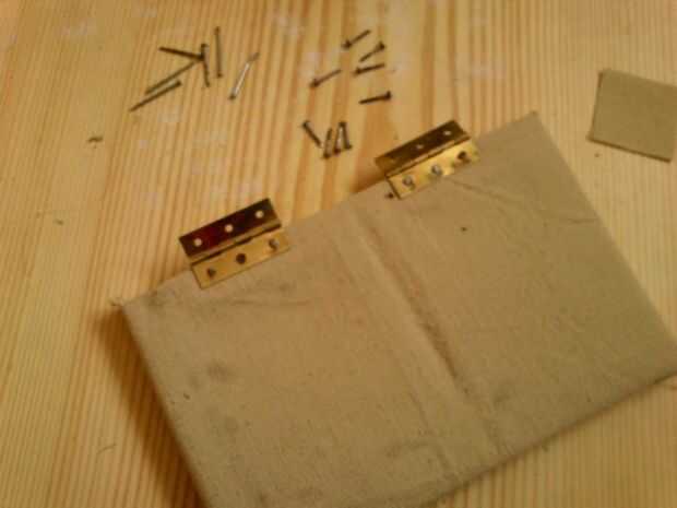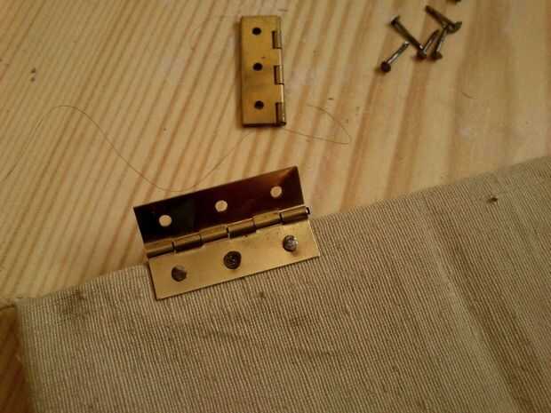 Último paso es la adición de las bisagras. Primero les clavo en la puerta y después thet Fije la linterna.