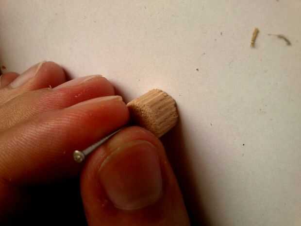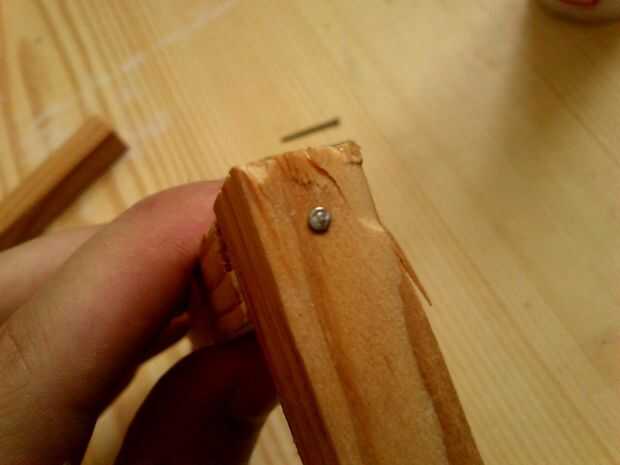 Siguiente paso es colocar una manija de la puerta. Usé un pedazo de palo y un clavo.
