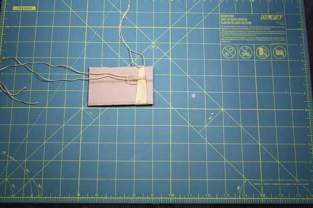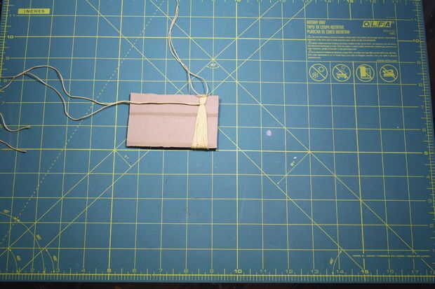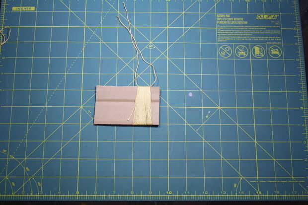 Hay un montón de indicaciones sobre cómo hacer borlas - este es mi método. Me gusta seda del bordado para esto, pero si quieres puedes probar algunos otros tipos de cadena. Corte un pedazo de cartón por lo menos de 1.5" de alto y el abrigo de seda alrededor de él como se muestra. Enrolle la seda del bordado por lo menos 20 - 30 veces por el tablero. Hilos y cuerdas más gruesas pueden necesitar menos. Experimento.